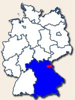 Bärnau liegt im nordbayerischen Landkreis Tirschenreuth (rot markiert), in der nördlichen Oberpfalz nahe der tschechischen Grenze im Bundesland Bayern (Blau markiert).